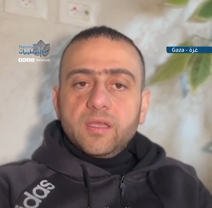 يروي المعتقل تفاصيل اعتقاله، حيث دخلت الدبابة لمنزله وهدمته، وقام الاحتـ-لال الإسرا-ئيلي باعتقال الرجال أما مصير النساء والأطفال فمجهول.